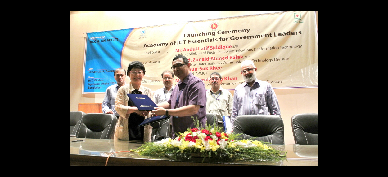 UN-APCICT's training program to help government officials and policymakers to improve capacity building and leverage ICT for national and regional socio-economic development, the Academy of ICT Essentials for Government Leaders (Academy), was launched in Bangladesh on 29 April in collaboration with the Bangladesh Computer Council.